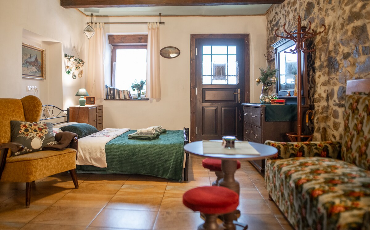 Thoughtfully renovated traditional mining house in a peaceful setting, only 3km away from Banska Stiavnica city centre. This stone gem is a dog friendly apartment with private courtyard, mainly suitable for a couple wishing for a romantic gateway. PS: All the reconstruction has been done by ourselves and our own hands. Its a never-ending love affair.