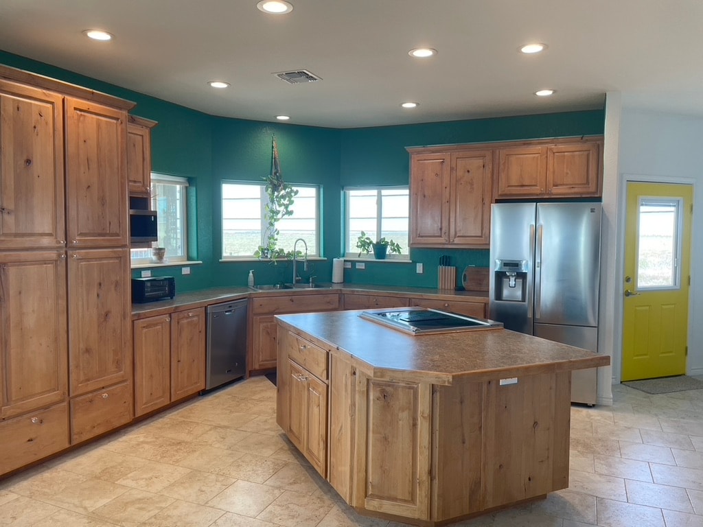 Our beautifully rebuilt home offers one story, bay front living with a little over one acre of private space, plenty of parking and a 300 ft. lighted pier with a fish cleaning station. Bring your own poles because you WILL want to wet a line. Amazing sunrises and sunsets with breathtaking views of Copano Bay will be all yours!