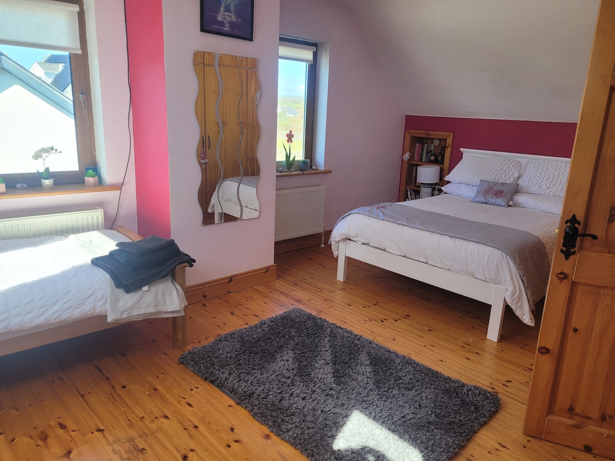 Bienvenido a mi lujoso apartamento independiente en Draíocht na Mara, donde la comodidad se combina con impresionantes vistas al mar para un retiro inolvidable. Yo llamo al apartamento 'An Tearmann', que significa el santuario. Entra en un espacioso refugio diseñado para satisfacer todas tus necesidades. Sumérgete en el lujoso abrazo de una cama tamaño king después de un día de exploración, envuelto en la tranquilidad de tu santuario privado. Refréscate en el moderno baño privado, completo con toallas y una ducha rejuvenecedora.