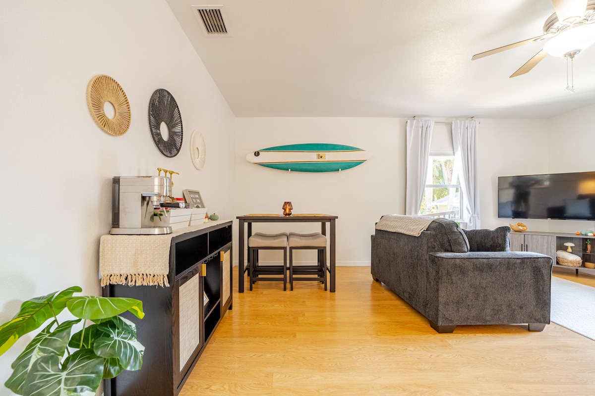 Come visit our secret oasis! Our Surf Shack is centrally located with a short drive to the many beautiful beaches, Daytona Mainstreet, Daytona International Speedway, world renowned surf spots, restaurants, shopping, and so much more! The home has a fenced in backyard with plenty of extra parking for boats, RVs, and trailers. Whether you’re a couple looking for a quaint retreat or a remote worker looking to enjoy the FL sunshine, the Surf Shack has you covered.