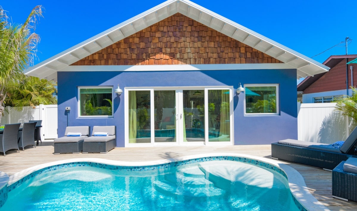Kiwi Cottage ha sido cuidadosamente redecorada con una acogedora decoración de isla costera. Recién pintado con muchos muebles nuevos, tapices, espejos, alfombras y todos los edredones nuevos. ¡Esta casa de 3 dormitorios y 2 baños en la isla de Anna Maria es el lugar perfecto para pasar tus próximas vacaciones familiares! Estamos a solo 0,3 millas de la playa. Para aquellos días que quedan en casa, la piscina privada del patio trasero y el spa son como un oasis tropical, con múltiples áreas para relajarse, mientras ves la televisión al aire libre y usas la parrilla Weber.