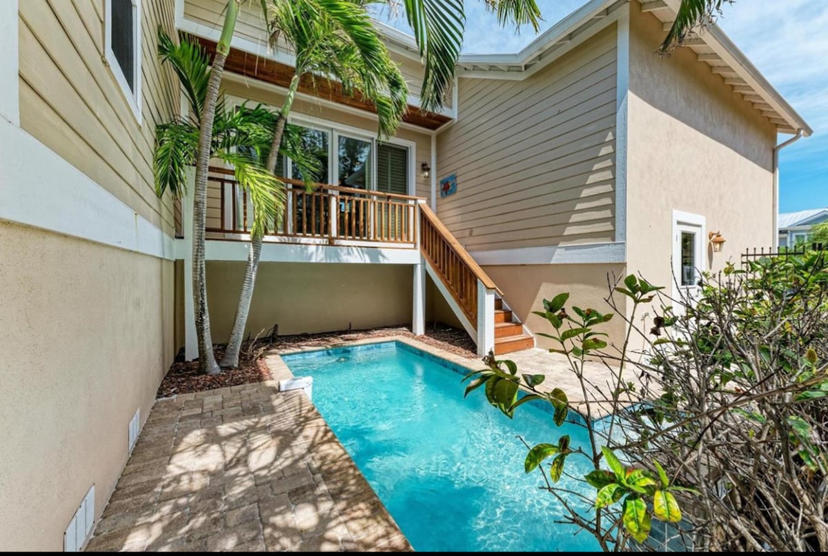 El encantador Salty Harbor se encuentra en una esquina pintoresca y exclusiva de AMI y cuenta con una piscina privada climatizada y un amplio estacionamiento para 2 vehículos e incluso un barco: - ¡Pregúntanos si tus fechas no se ajustan a nuestro calendario! - Si no tienes una sola mascota de 50 libras, por favor, discútelo con nosotros. - Una de las casas gemelas boutique MyAnnaMariaStay, ¡búscanos! Te encantará la sensación de lujo de mediados de siglo, el exuberante patio y un paseo de 6 minutos a la playa, Publix o la parada del tranvía. AMI fue votado como uno de los 50 mejores lugares de vacaciones del mundo en 2024