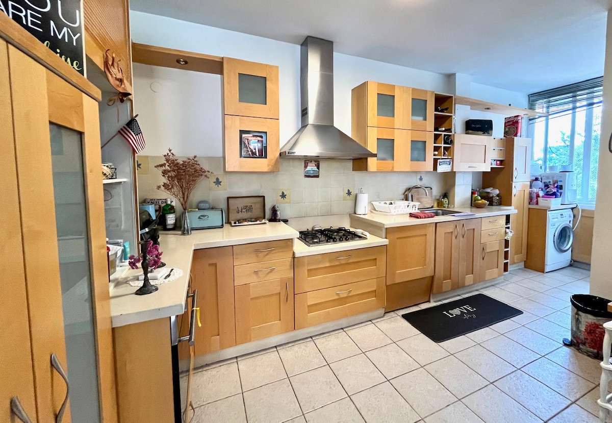 ¡Departamento de dos dormitorios, ubicado en el corazón de la ciudad! Ideal para parejas, familias o amigos. Edificio amigable y fácil estacionamiento. Fácil transporte a pocos pasos, puedes llegar a Tel Aviv en solo 10 minutos. El departamento cuenta con wifi. Sala de estar con TV, aire acondicionado, sonido de música acústica Alexa, sofá cama y colchón ortopédico (ambos cómodos para dormir ). El dormitorio principal tiene TV y aire acondicionado. Tienes acceso a una lavadora, horno, nevera y todas las comodidades de casa durante tu estancia.