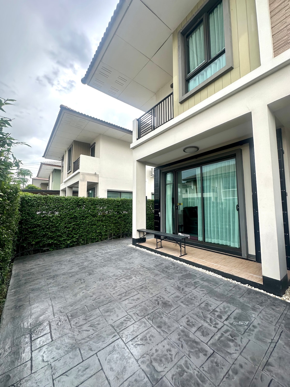 Casa adosada moderna ultra silenciosa de 3 dormitorios a 15–20 minutos de BKK, perfecta para grupos de 4–6 y estadías más largas. Amplio diseño con camas tamaño king de grado hotelero y ropa de cama lavada a 60 °C para un sueño profundo. Registro de entrada automático las 24 horas, Wi-Fi rápido, Netflix en todos los televisores. Cocina completa y lavadora para estancias prolongadas. Comunidad cerrada segura con piscina, gimnasio y 7-Eleven cercano. Fácil de encontrar con acceso fácil a taxis. Haz el check-in en cualquier momento, sin estrés, incluso para llegadas tardías. 欢迎长期入住