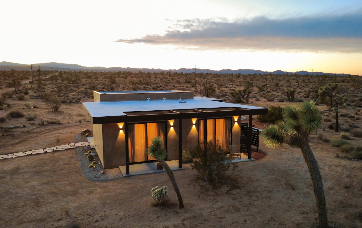+ Brand new fully loaded luxury home + 10 private acres w/ 100+ Joshua Trees + Hot tub + Cowboy tub pool (open for the summer!) + Propane firepit & BBQ + Outdoor stargazing chairs + Custom lounging deck + Fully-equipped kitchen + Secluded location near all Joshua Tree attractions 10 mins ➔ La Copine 10 mins ➔ Integratron 10 mins ➔ Giant Rock Meeting Room 20 mins ➔ Joshua Tree Village 20 mins ➔ Giant Rock 25 mins ➔ Joshua Tree National Park 25 mins ➔ Pappy & Harriet's 25 mins ➔ Pioneertown