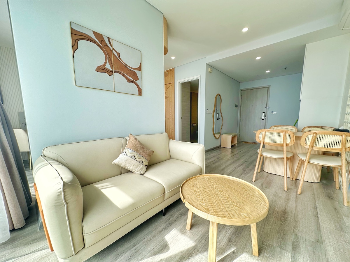 Apartamento de 52 metros cuadrados con vistas al mar y a la ciudad que se encuentra en el centro de la ciudad de Nha Trang y en la parada de autobús del aeropuerto. Este apartamento está dentro de un edificio moderno con centro comercial y está a solo 2 minutos a pie de la playa, cines, supermercados, pubs, mercado nocturno, hoteles de 5 estrellas como Intercontinental, Sheraton, Sunrise... Tenemos muebles completos y cómodos. Realmente maravilloso y disfruta de tus vacaciones con muy buen aire.