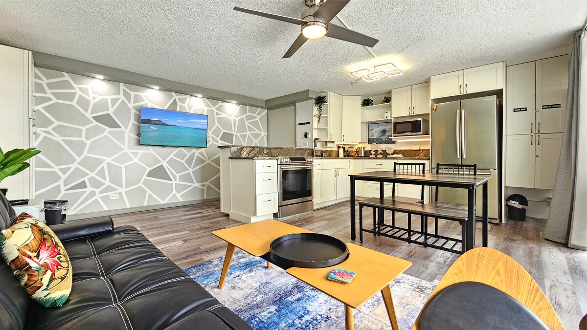 Disfruta de nuestro estudio recién renovado en el Royal Garden Waikiki. Sumérgete en la vibrante vida de la ciudad con tiendas y restaurantes cercanos, o da un tranquilo paseo de 12 minutos hasta la emblemática playa de Waikiki. Este estudio totalmente amueblado cuenta con dos camas tamaño queen y una pequeña cocina. Disfruta de comodidades modernas como wifi gratuito, cable y aire acondicionado. Esta unidad de planta alta cuenta con vistas a la ciudad, Ala Wai y unas vistas al mar.