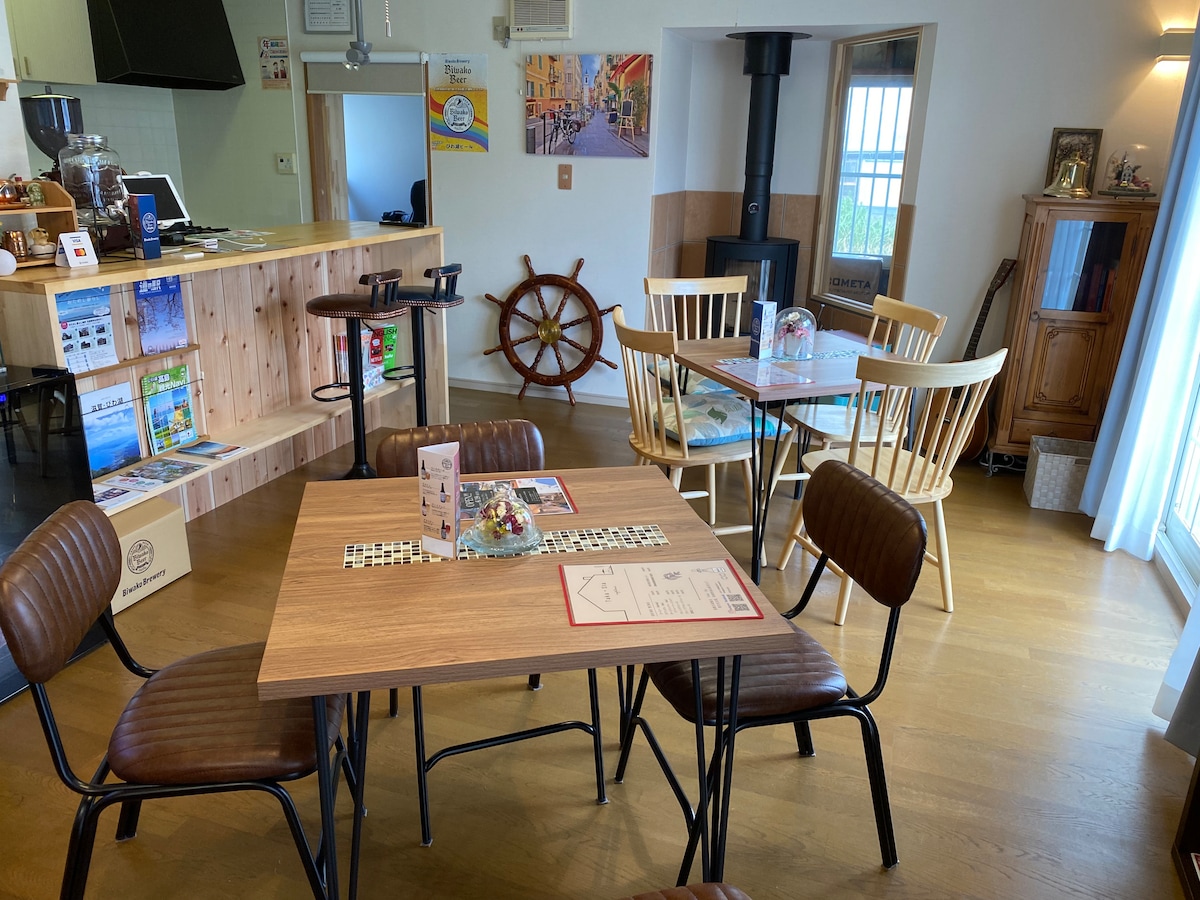 A 2 minutos a pie de la playa de Hagi, una de las 100 mejores playas de Japón. Es una instalación privada con jardín, terraza, chimenea y pantalla grande.