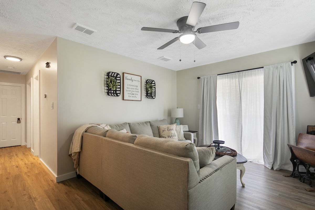Casa de campo totalmente equipada ubicada en el centro de Fayetteville, Carolina del Norte. A 15 minutos de la base, a menos de 8 minutos de Cape Fear ER. 2 dormitorios (principal - 1 cama queen, de repuesto - 2 camas individuales) dos baños COMPLETOS. ¡La sala de estar y ambas habitaciones están equipadas con televisores inteligentes! Cocina totalmente surtida, lavadora/secadora y todos los servicios básicos para que tengas todas las comodidades como hogar. También hemos incluido una carpeta con todo lo que necesitas saber sobre el alojamiento y una lista de 20 atracciones locales.