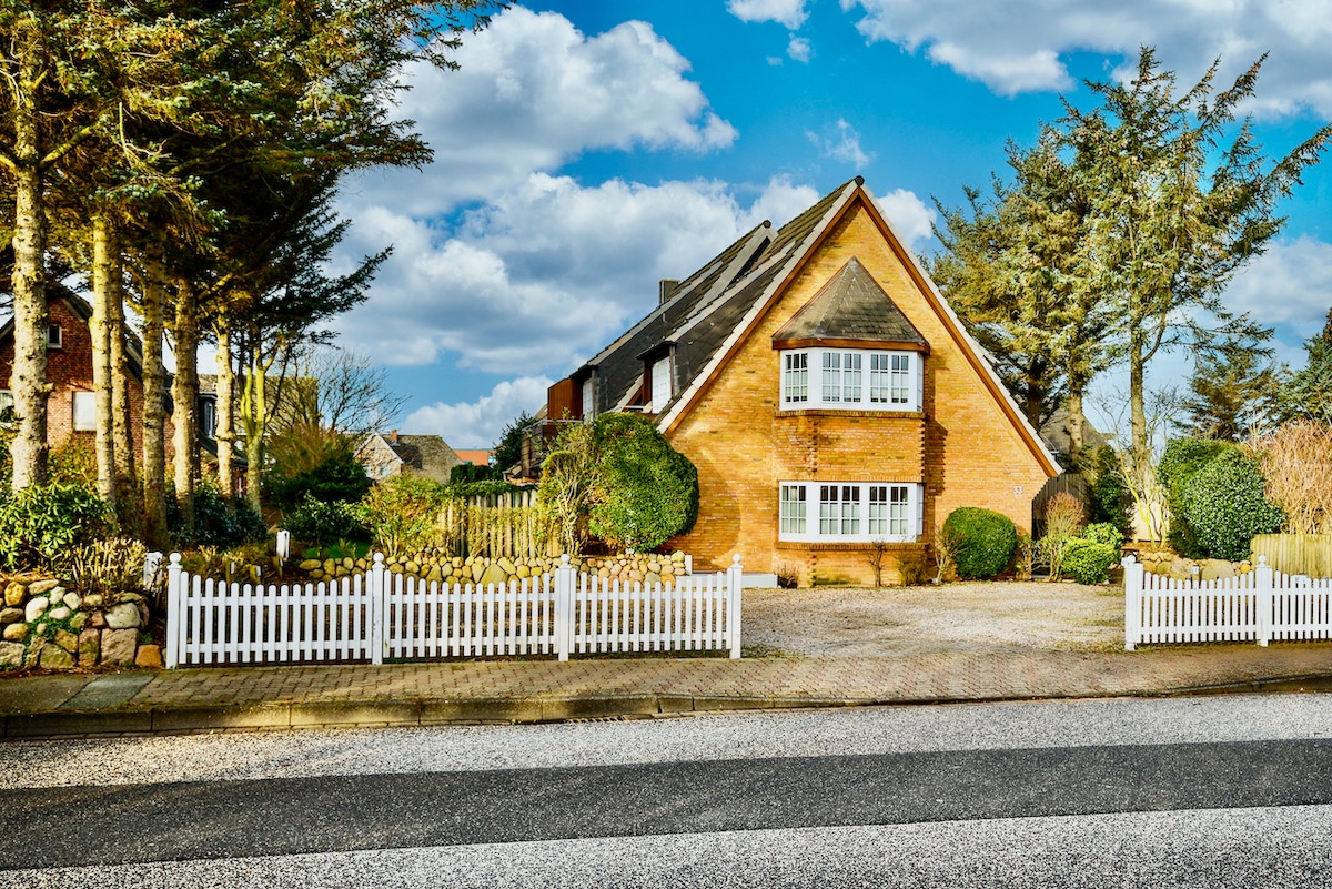 Casa de campo de lujo "Hygge Hüs" (158 m²) ubicada en el centro de Westerland para un máximo de 6 personas. 3 cómodos dormitorios, 2 elegantes baños con ducha, aseo de invitados, sauna privada, amplia sala de estar. Jardín y terraza con muebles de jardín y silla de playa. Wifi, lavadora, secadora, cafetera disponible. 2 espacios de estacionamiento privado. Se admiten perros alergicos. Domicilio para NO fumadores.