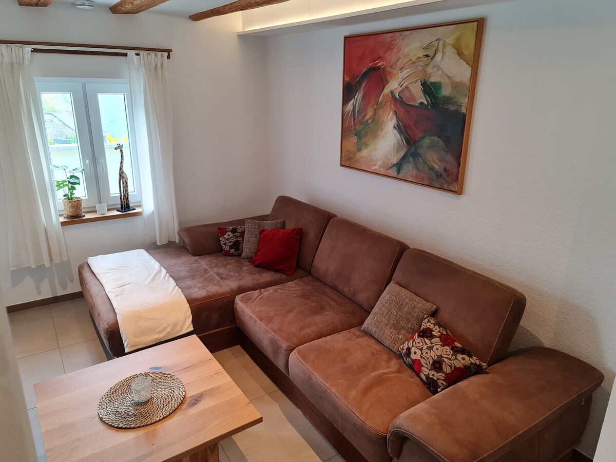 En el apartamento de 60 metros cuadrados con entrada privada encontrarás todo lo que necesitas para unas vacaciones. 1 cama doble + 1 sofá cama con capacidad para un máximo de 4 personas - Aparcamiento en frente de la casa En pocos minutos se puede llegar a pie al bosque, a la montaña Michelsberg, de 588 metros de altura, y se puede caminar en todas las direcciones. En coche se tarda una buena media hora en llegar a Nürburgring, al río Ahr, al lago Ruhrsee o a Phantasialand Brühl. Tiendas a 10 km de distancia. Se admiten perros previo acuerdo.