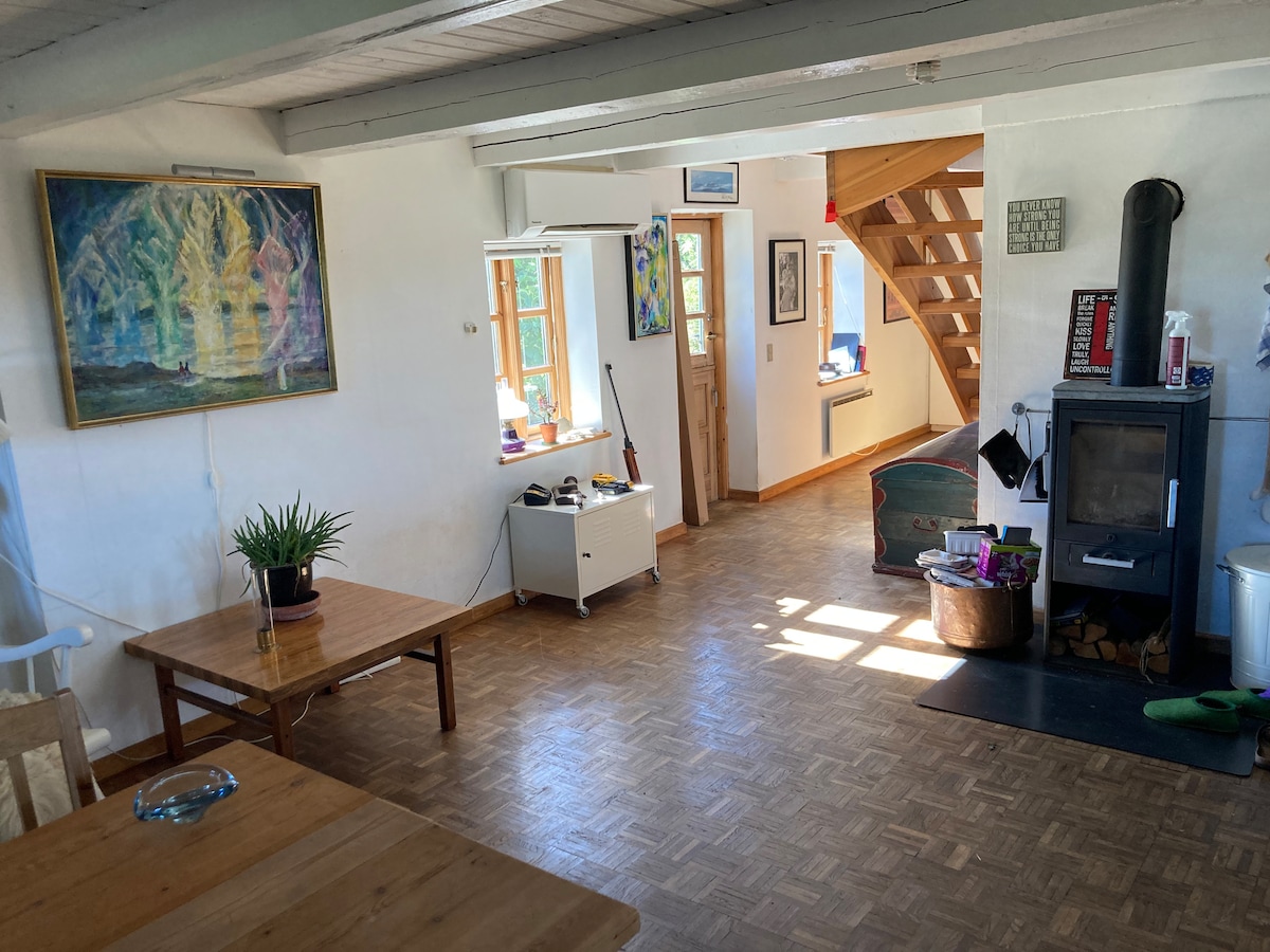 Helt fantastisk og stemningsfuld bolig, med stor pejs, god wi-fi, rigelig parkeringsplads og egen indgang. Senge er redt op ved ankomst. Der er håndklæder og sæber. kaffe og te. Beliggenhed tæt på mange seværdigheder som Aros, Gamle By i Århus, Industrimuseet, tæt på en af de bedste strande i DK og golfbaner. Landlige omgivelser.