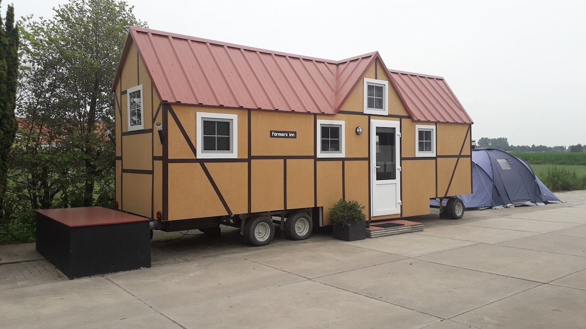 Es una "minicasa" en el patio de una granja lechera activa. Espacio suficiente, también para estacionar. Por lo general, hay alguien en la granja para recibir y ayudar a los huéspedes. ¡La cabaña está completa pero es pequeña! ¡La altura a pie es de 187 cm! La cabina de la ducha mide 70 x70 cm. Si tienes problemas para subir escaleras, ¡no subas a la cama! Bicicletas sencillas disponibles de forma gratuita. ¡No hay check-in los domingos!