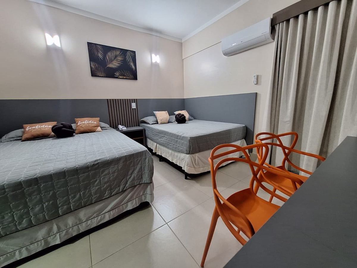 Diviértete con toda la familia en este acogedor y super equipado apartamento para tus días de descanso y diversión. ¡Ubicado en Veredas, justo en el centro de Rio Quente y al lado del Hot Park, tiene acceso a una zona de condominio con ocio completo, así como varias opciones de piscinas con las maravillosas aguas cálidas de Goiás! También incluye plaza de aparcamiento, aire acondicionado en el dormitorio y en la sala de estar (EXCLUSIVO DE NUESTRO PISO), WI-FI y kit de cocina con electrodomésticos súper nuevos, etc.