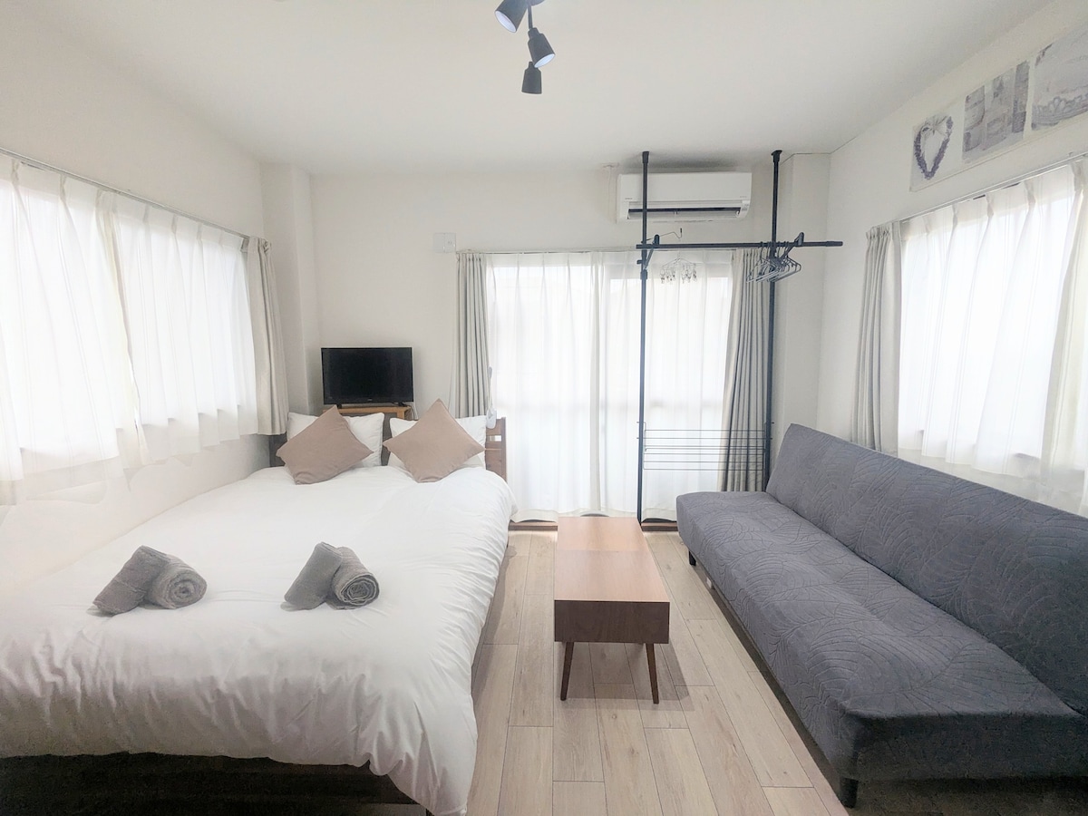 Hay una gran cocina donde puedes cocinar, con utensilios de cocina (sartén, una olla, cuchillo, tabla de cortar), cucharas, platos, jabón para platos, hervidor, etc.La habitación está totalmente equipada con lavadora, detergente en polvo, toallas, cepillos de dientes, peines, secador de pelo, aspiradora, balanzas, etc. para que incluso aquellos que se alojen a medio o largo plazo puedan usarla de inmediato. * Un pequeño calentador, humidificador y manta se instalan por separado de lo anterior.(Solo en invierno) Servicios (gratis) Champú, acondicionador, jabón, jabón corporal, cepillo de dientes, peine, toalla, secador de pelo Instalaciones de cocina (gratuitas) Cocina, estufa de gas, juego de utensilios de cocina, juego de platos, nevera, microondas, hervidor eléctrico, balanza.