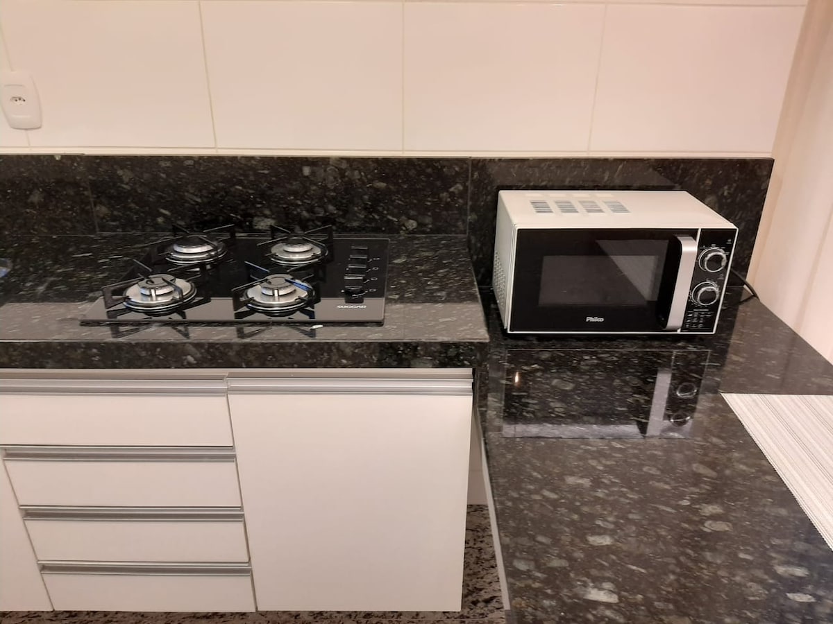 ¡Apartamento nuevo, bien ventilado, bien equipado, un lugar de estacionamiento cubierto, con ascensor! Situado en la cuadra cerrada de Praça da Savassi, fácil acceso al centro de la ciudad, cerca del centro comercial Pátio Savassi y otros comercios. ¡Ha sido recientemente amueblado para alojar a clientes exigentes y de buen gusto! 120Mg de Wi-Fi. Un pequeño apartamento con una sala de estar, cocina americana y suite con armario.
