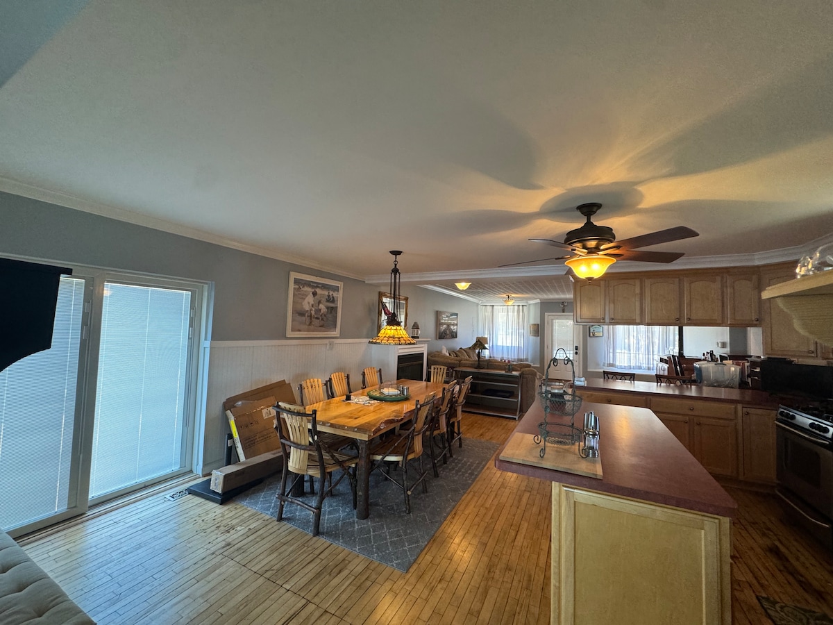 Calling groups who love the outdoors in all seasons! A perfect spot for groups with lots of space inside and out. We have 3 dining areas (1 outside), 2 living rooms and a "bunkhouse" with a TV to send the kids up to play! The house is fully stocked with bath & beach towels plus everything you need in the kitchen. Plus...cornhole, 2 stand up paddleboards, 2 kayaks, 2 canoes, a row boat and a splash pad! NEW in fall 2024: we've added a new dining table for ten, new mattresses and new bedding!