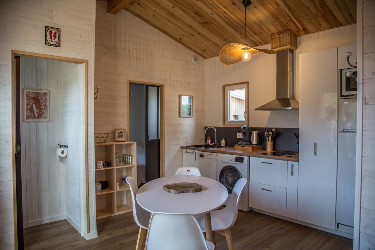A todos los amantes de la naturaleza... Estamos encantados de recibirle en este encantador estudio a 600 metros del lago más grande de Francia. Y a 10 minutos de las grandes playas de arena fina. Una construcción de madera, cálida y cómoda para 4 personas con 2 camas, 1 cama de 160 y una cama tipo cabaña elevada de 140 para un feliz regreso a la infancia! En el exterior podrá disfrutar de la terraza sombreada, sin vecinos, con vistas a los robles, un pequeño pasaje apreciado por nuestros amigos las ciervas al caer la noche...