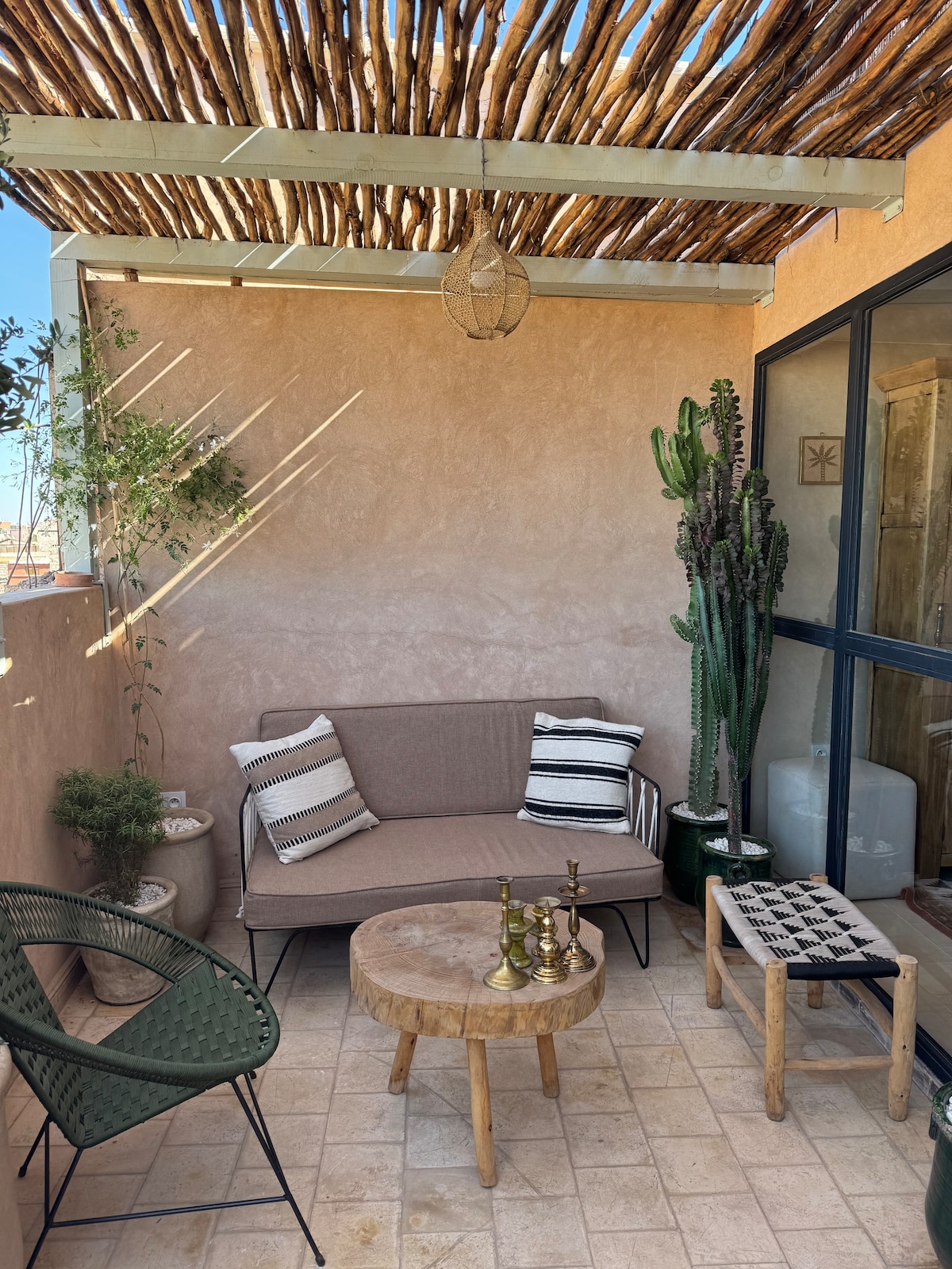 Bienvenido a un lujoso apartamento privado en un histórico Riad en el corazón de la medina. Está a solo unos minutos a pie de la plaza y a poca distancia a pie de muchas atracciones culturales, cafés, restaurantes y zocos bulliciosos. Nuestra encantadora ama de llaves Ines se ocupará de ti durante tu estadía.