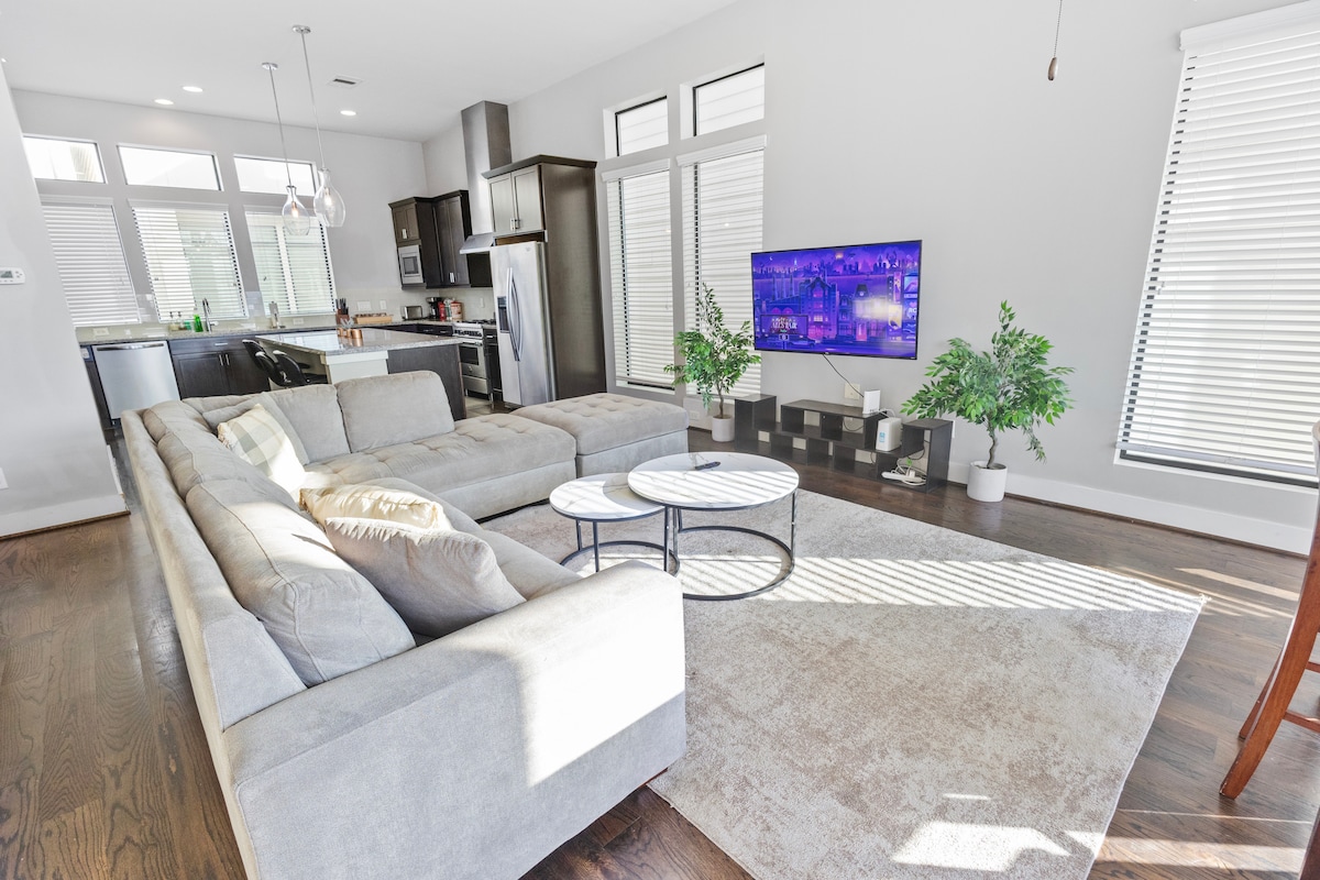 Welcome to The Prolific Stay, your luxury escape in Houston. - Thoughtfully designed 3BR retreat - Vibrant décor and spa-like bathrooms - Spacious living areas and private office nook - Fully stocked kitchen and two-car garage - Smart TVs and fast Wi-Fi - Perfect for business travel, family trips, or extended stays - This designer 3BR townhome offers bold style, calming accents, and upscale amenities that cater to relaxation and productivity.