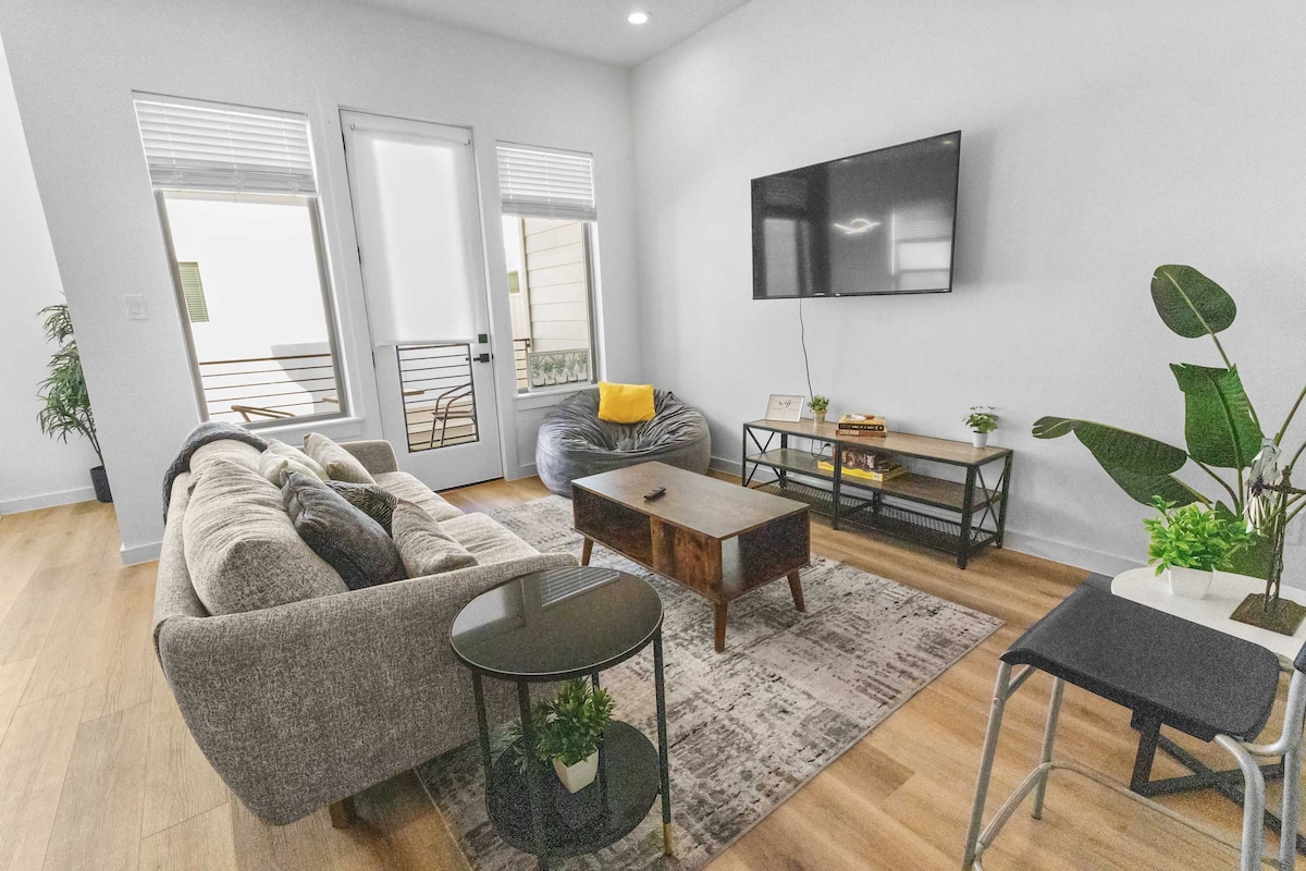 Bienvenido a tu elegante refugio urbano en el distrito EaDo de Houston. - 3 amplios dormitorios con lujosas camas tamaño king. - Elegante cocina moderna y techos abovedados. - Garaje privado para dos autos y balcón. - Wifi de alta velocidad y cable premium. - Cerca de Minute Maid Park y Toyota Center. - Lugares de vida nocturna y bares locales cercanos. - Apto para familias con Snoo Bassinet y silla alta disponibles. Disfruta de lo mejor de Houston desde este refugio urbano perfectamente situado.