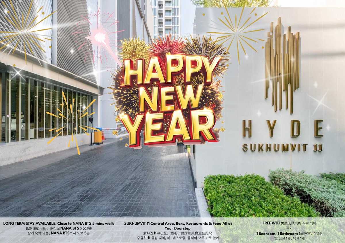 Da la bienvenida a los huéspedes a HaunHaus 01, un acogedor apartamento con ambiente de BauHaus. Distancias A pie: 🛒 A 3 minutos de Nana Plaza. 🏞️ A 5 minutos del parque forestal Benchakitti. A 🚆 7 minutos de Nana BTS y Sukhumvit 11 restaurantes/vida nocturna 🏥 Fácil acceso al Hospital Bumrungrad y QSNCC Servicios: 💪🏻 Piscina y gimnasio Wifi 🛜 de alta velocidad Sábanas 🛏️ cómodas Proyector 📽️ inteligente TV 📺 inteligente Altavoz con bluetooth🔈 Marshall 👮Conserje y seguridad las 24 horas, 7 días a la Limpiado y desinfectado después de cada estancia.