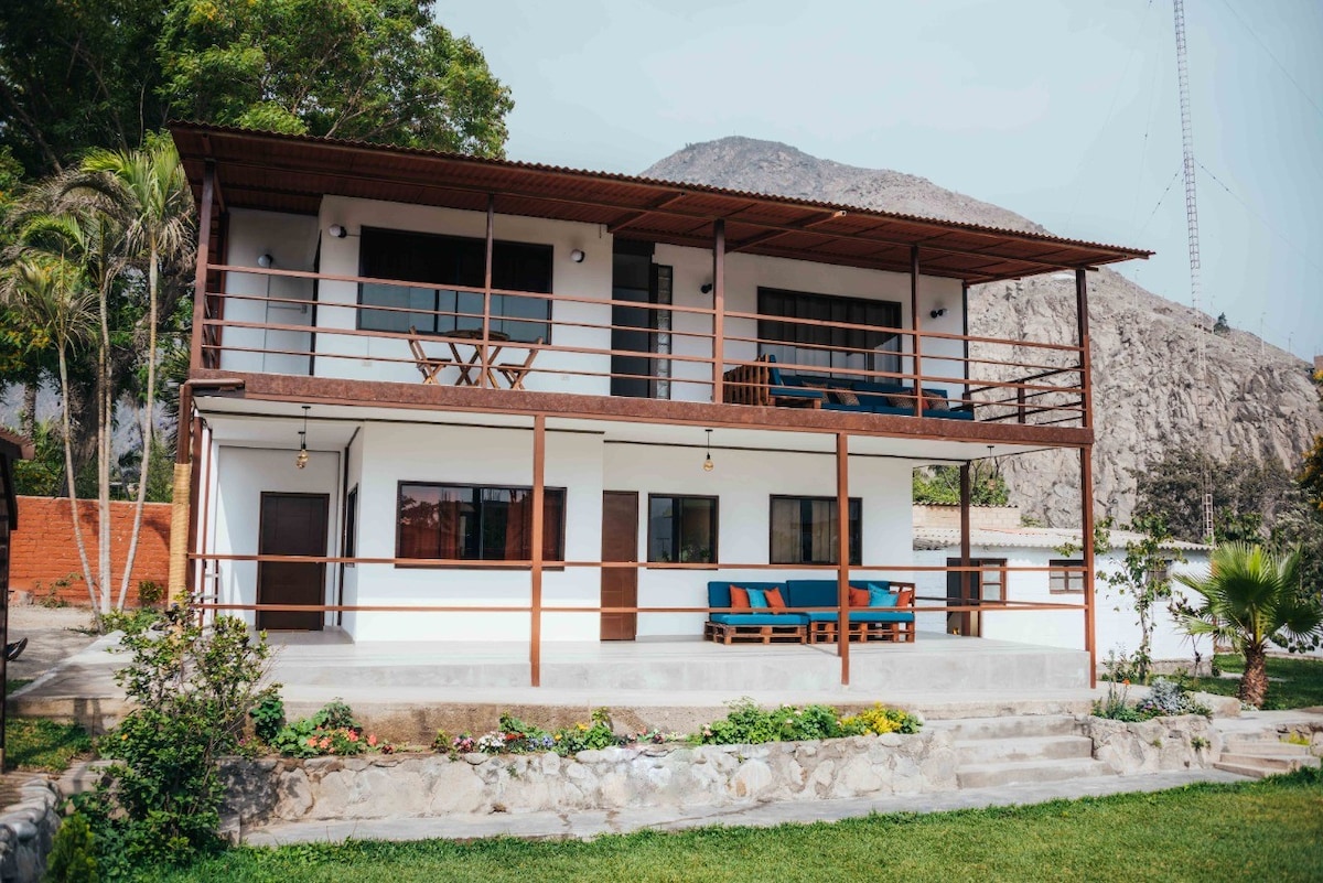 Casa en condominio cerrado. Ideal para familias o grupos de amigos que quieran desconectar de la ciudad y conocer la Sierra de Lima y sus actividades, además de un clima soleado todo el año. Perfecta también para retiros gracias a su tranquilidad y entorno natural. Es el lugar ideal para paseos, trekking y deportes al aire libre. Para los amantes de cocinar al aire libre: horno de barro, parrilla, fogata, hueco para pachamanca y caja china. WiFi Starlink si necesitas estar conectado.