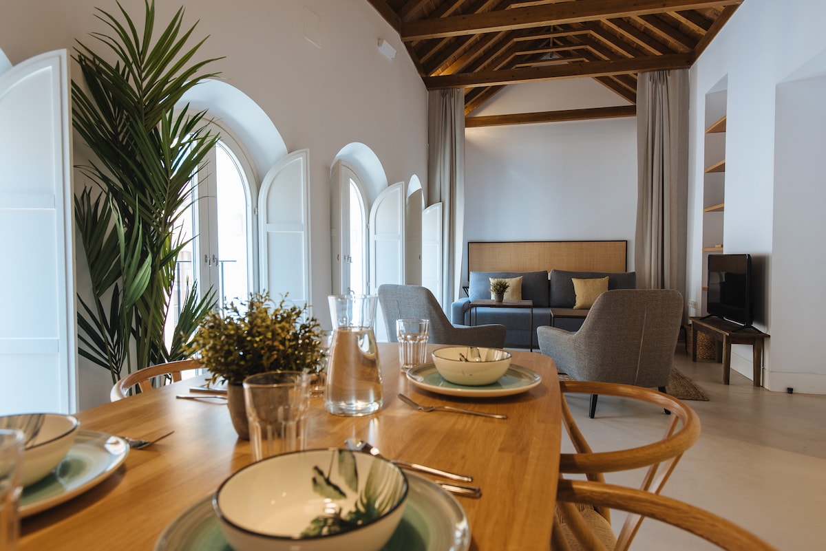 This AMAZING duplex apartment full of natural light is located in a PRIVILEGED LOCATION in the heart of historic district of Seville. This prime and quiet location has one of the best views of the neighborhood , facing a convent from the XVII century, as you can imagine, this UNIQUE atmosphere creates perfect place to relax and unwind after visiting vibrant Seville. It is as well the perfect "home base" to visit other cities in Andalusia. The apartment is located in a renovated house palace.