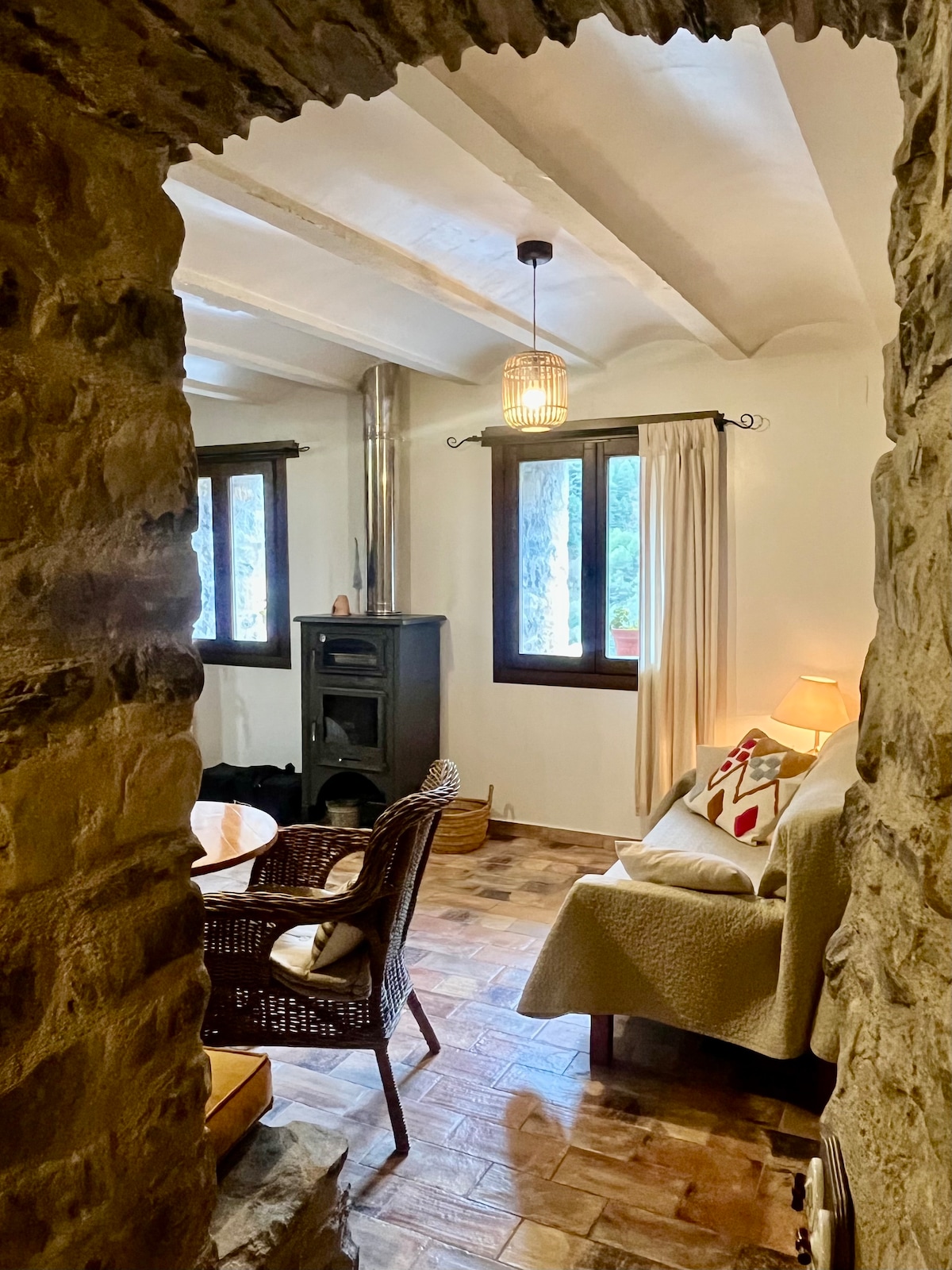 Casa con encanto de 1778, restaurada respetando su esencia original. Sus gruesas paredes de piedra crean un ambiente silencioso y acogedor, ideal para desconectar. Situada cerca del Parque Nacional de Ordesa y Monte Perdido, es perfecta para disfrutar de la naturaleza. La zona ofrece multitud de rutas de senderismo, bici, trail y moto road. No recomendable para bebés o niños pequeños por elementos originales de la casa.