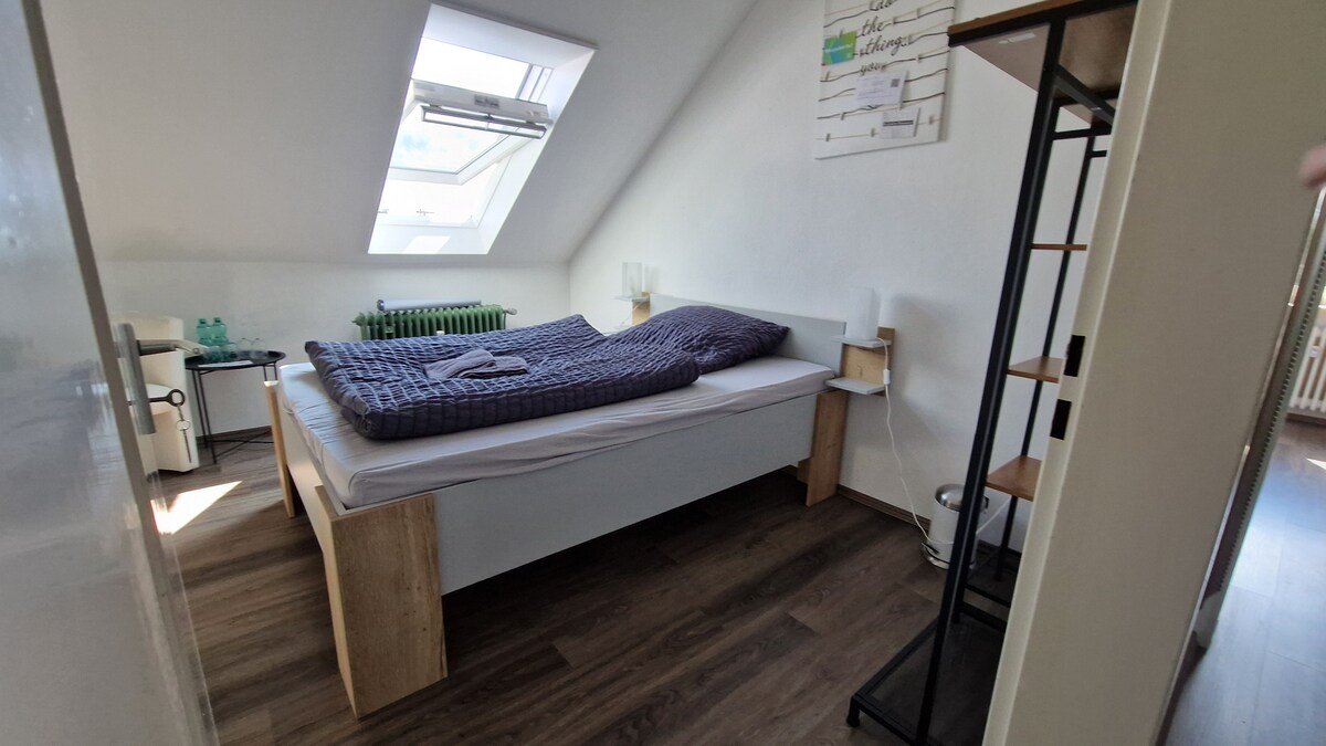 Apartamento en ático abierto con mucha madera, luz y una amplia vista del campo. Ideal para aquellos que aprecian la paz, ya sea solos o juntos. Cocina espaciosa y de alta calidad, balcón soleado, WiFi estable. El apartamento es parte de mi casa, personal, no perfecto. Los suministros se pueden usar con cuidado. Un lugar para llegar y hacer una pausa antes de seguir adelante.