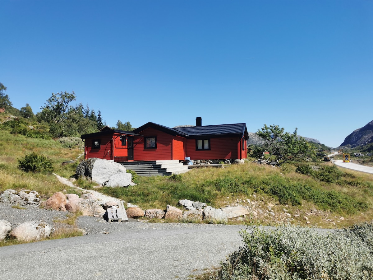 Cabaña de montaña junto a la carretera cerca de Preikestolen Kjerag