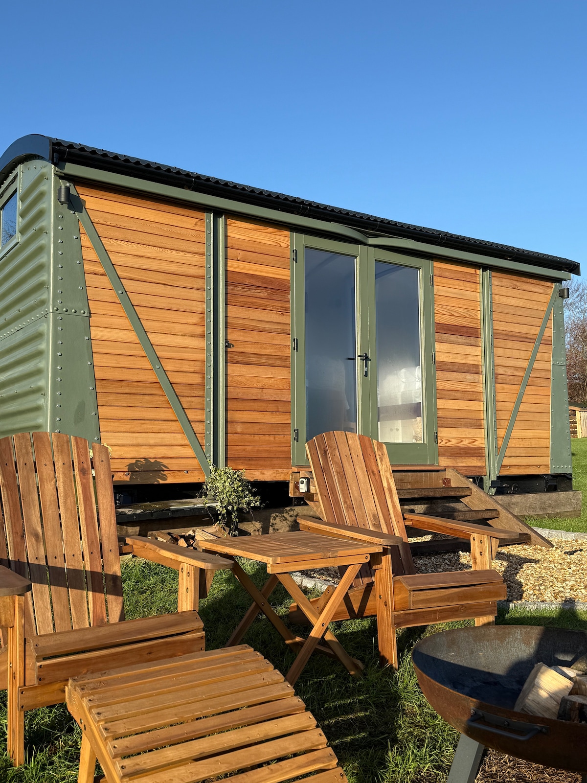 Encantador y acogedor refugio enclavado en cinco acres de tierra, situado en el corazón de Warwickshire. El vagón de ferrocarril de 1962 ha sido cuidadosamente convertido y diseñado por dentro y por fuera, combinando la comodidad moderna con el carácter atemporal. Con vistas panorámicas de 360 grados a la campiña ondulada, este escondite único ofrece una escapada tranquila. Ya sea que estés aquí para relajarte en la naturaleza o explorar la rica historia y belleza de la zona, nuestra experiencia fuera de la red proporciona el telón de fondo perfecto para tu escapada.