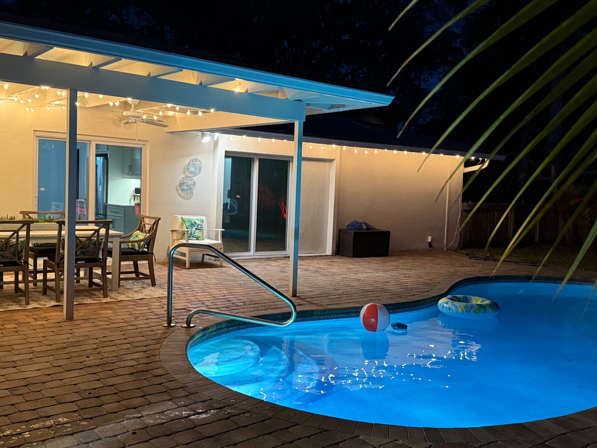 Fabulous 2 bedroom home with a private salt water pool. Whether traveling to Stuart for work or pleasure, you will love the relaxed vibe of this home. Great outdoor spaces for enjoying the beautiful weather with a private fenced front yard area and pool and backyard area. We are centrally located with a 10 min drive to the beach and downtown. We are within walking distance to restaurants, nightlife, grocery shopping, medical center, pharmacy and other shopping