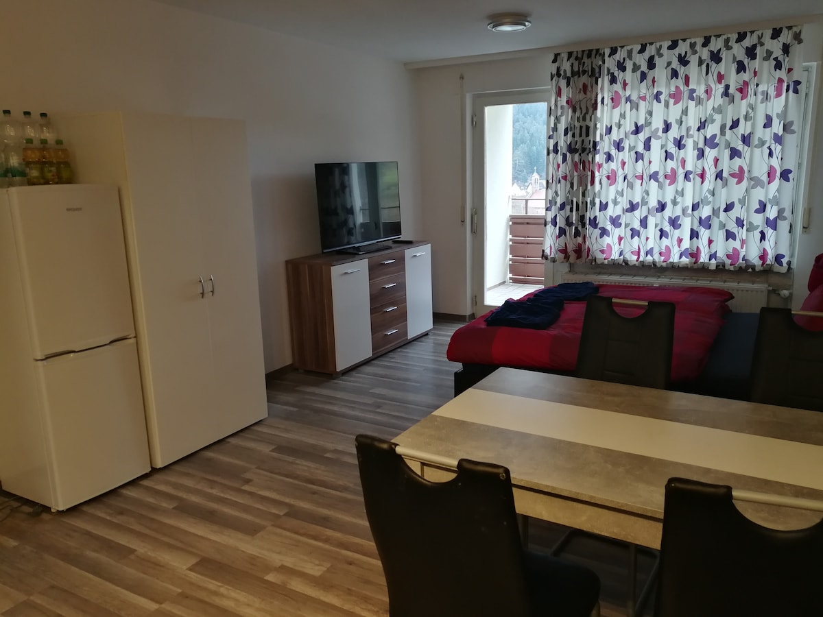 Hier finden Alleinreisende oder Paare ein ideales Studio . Klein aber urgemütlich . ! Es ist 1 Zimmer zum Wohnen und Schlafen! Tauche ein in die Welt des Schwarzwaldes in unserem neu renovierten Appartement. Die original alte Holzbalkendecke strahlt urige Gemütlichkeit aus. Das neue Bad mit Retrofliesen passt auch perfekt zum Ambiente. Gerne dürfen Sie auch unsere Sauna (gegen geringe Nutzungsgebühr) 1.Nov. - 15. Dez. ist 1x Sauna inklusiv!