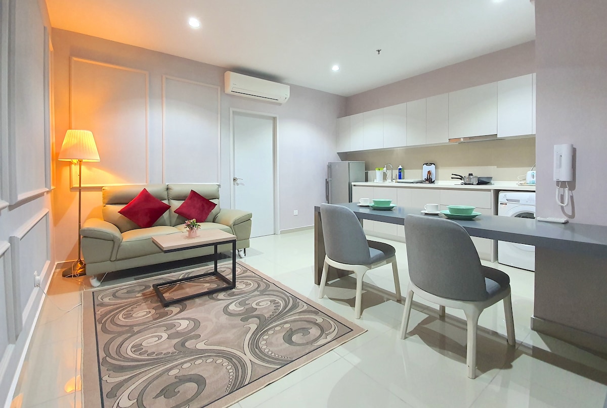 Location: ▪️Next to I-City Shah Alam. ▪️Linked by a bridge to Central I-City Mall ▪️7 Eleven, MyNews, KK Mart and multiple cafes located in the lobby. ▪️Self service laundry ▪️Variety of affordable restaurants popular in the area. ▪️Family-friendly and privacy-friendly. ▪️Mosque and university is within short distance. ▪️One free parking provided Entertainment: ▪️High speed Wifi ▪️55” Android TV (netflix included) in living room ▪️40” TV Android Box (>3000 channels & Netflix) in bedroom