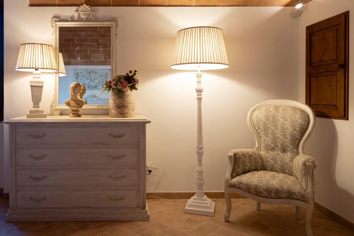 Immagina di svegliarti con le colline ornate di borghi e campanili a perdita d'occhio oltre la finestra della camera da letto: un'alcova con soffitti spioventi, travi e travicelli, pavimento in legno, in cima ad un antico casolare. Immagina da ogni affaccio della casa il sole che splende sulle vigne, oppure immagina il verde acceso degli uliveti dopo la pioggia primaverile oltre la grande terrazza adiacente alla cucina.