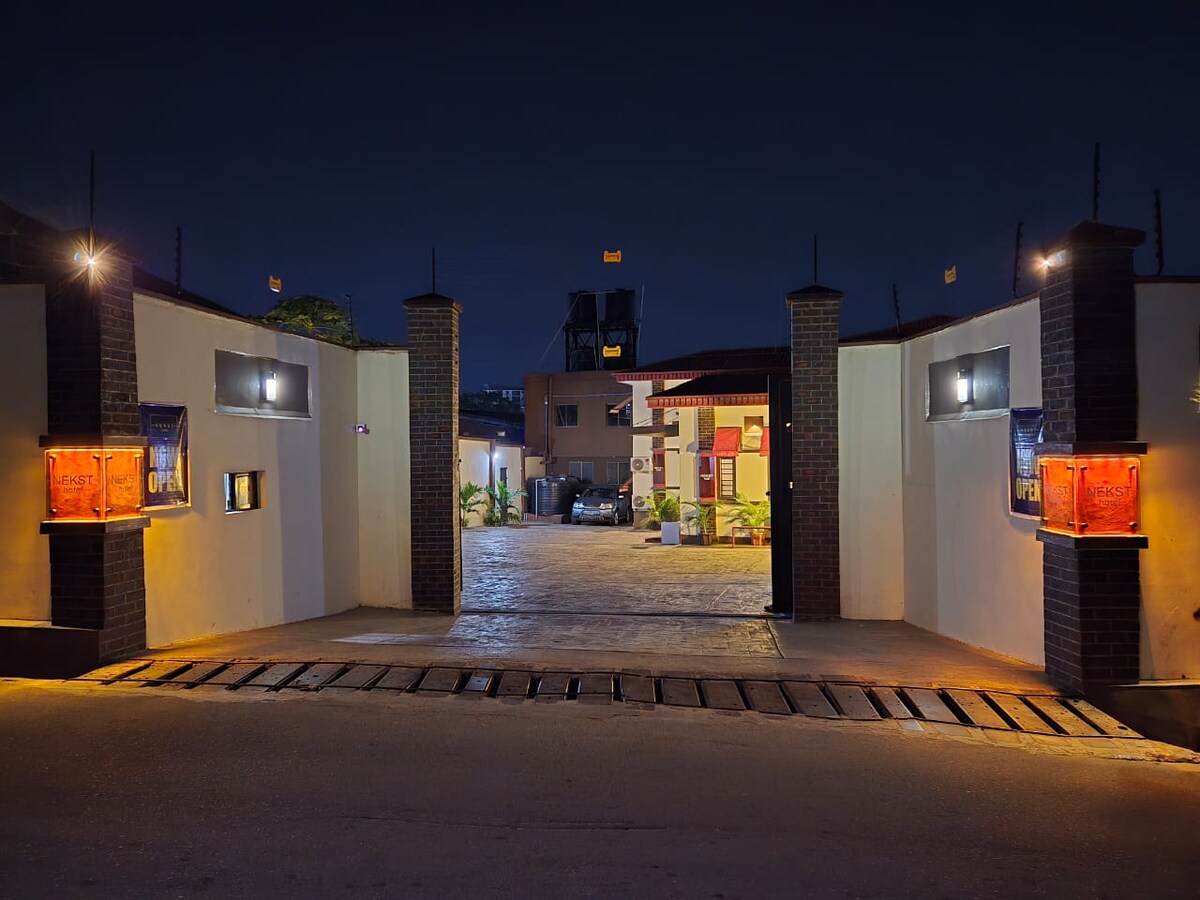 Welcome to NEKST Hotel – Where Comfort Meets Style! Nestled in the heart of Ibadan, NEKST Hotel is your perfect getaway for relaxation, adventure, and everything in between! Whether you're here for business or leisure, our cozy rooms, vibrant ambiance, and top-notch service ensure an unforgettable stay. No parking? No problem! We’re right in the city center, keeping you close to all the action. Ready for your NEKST great experience? Book your stay today!