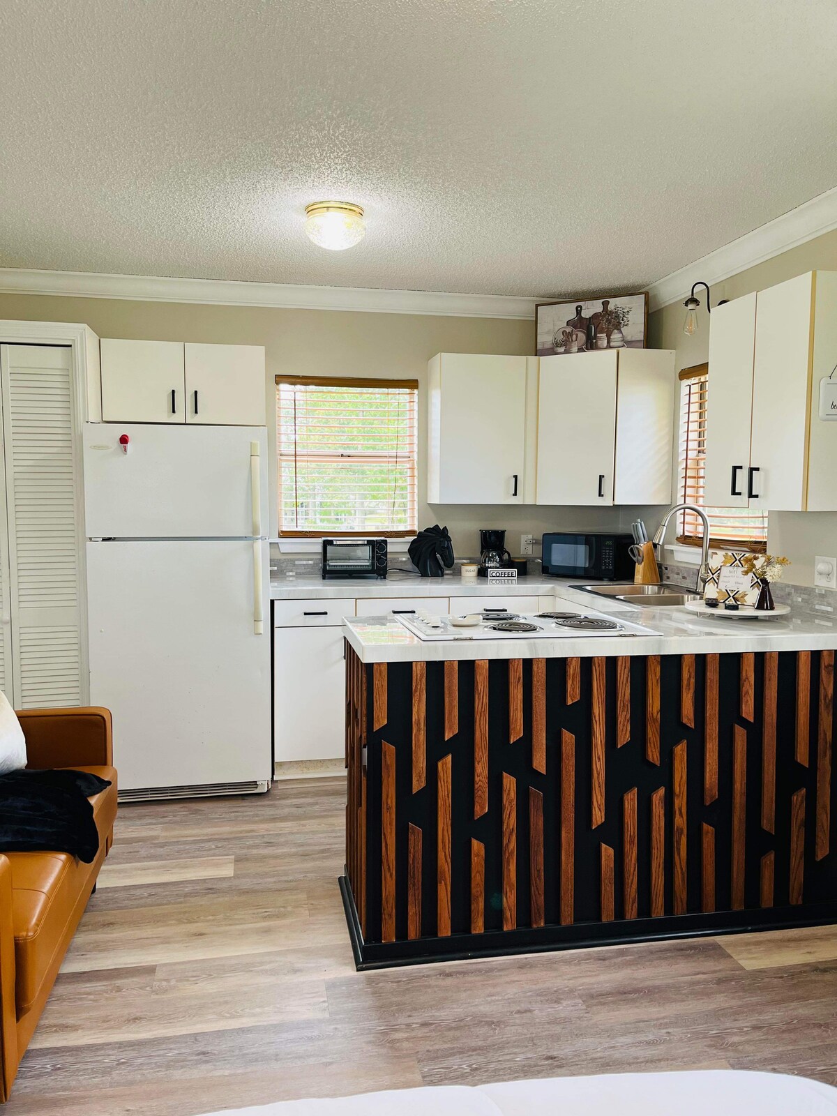 Located three blocks from historic downtown New Iberia, this studio apartment features a deep fenced-in porch out the front door and a sun deck out the side door. A walk-in closet, full bath, and mini-kitchen give you everything you need to call home. Enjoy the simplicity of this peaceful cottage with access to the common areas of the main house, filled with 120 years of history. In addition, the gardens feature a patio with a table for six, a barbecue grill, and a fire pit for cool evenings.
