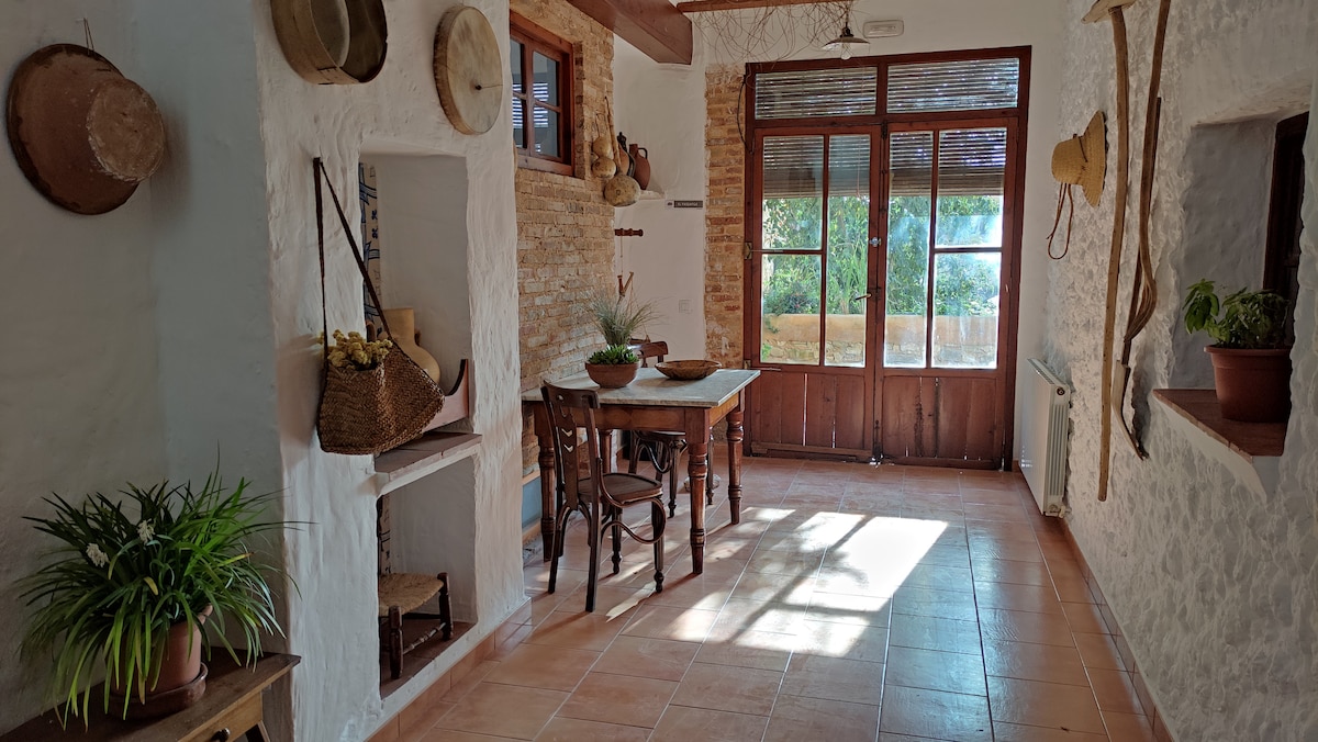 Ven a disfrutar de la naturaleza y la tranquilidad de un pueblo en las montañas. Nuestro alojamiento es perfecto para una pareja, pero con el sofá cama pueden venir con los niños o incluso dos parejas. Estamos a 100 metros del pueblo, con un ambiente donde se respira paz y tranquilidad. En el jardín de delante tiene algunos arboles, huerta y un laberinto con 700 cipreses. Detrás tiene la terraza donde contemplará las vistas de la montaña del Cavall Verd, donde desayunar será un espectáculo.