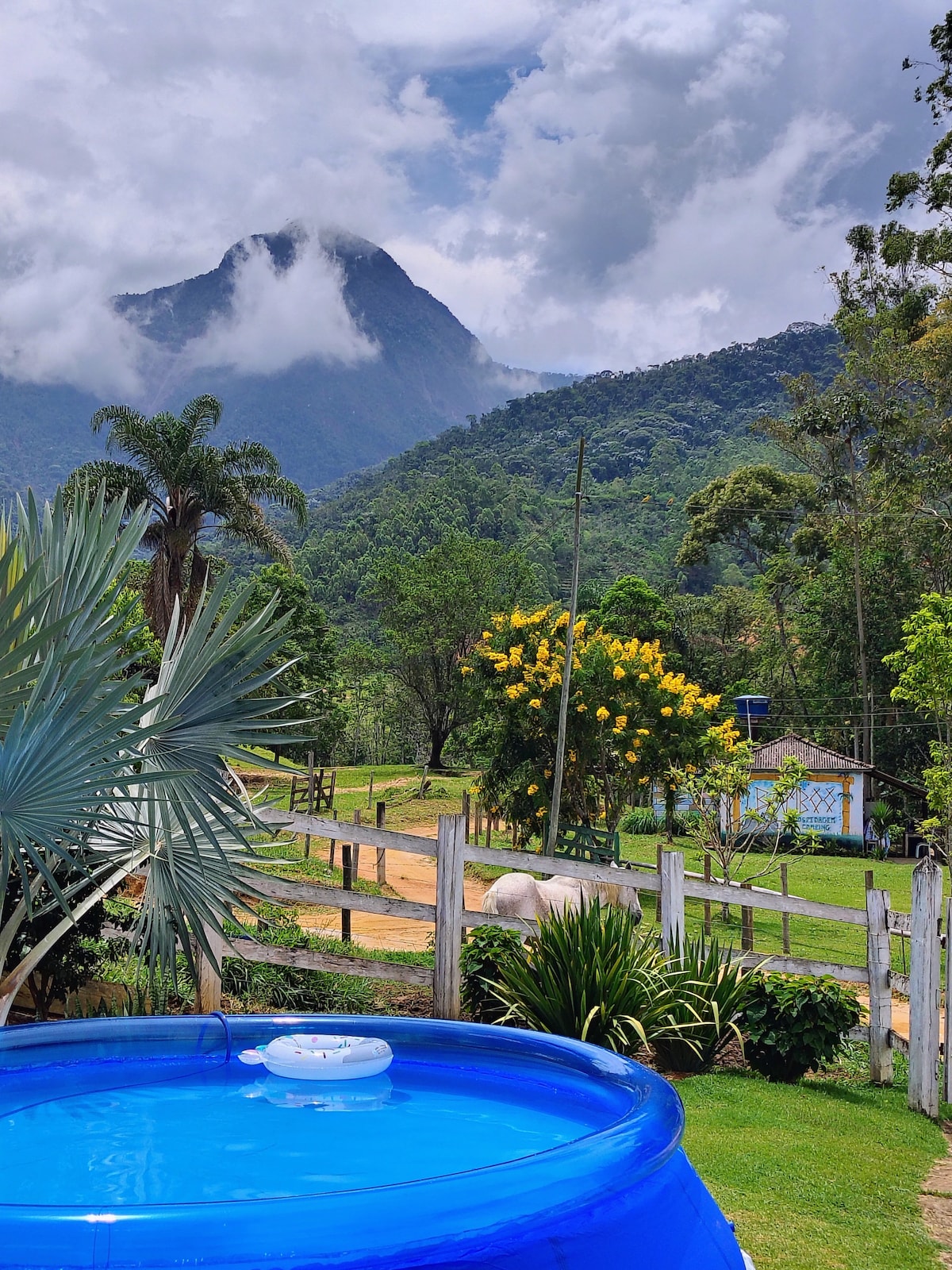 La casa está en una granja, con acceso pavimentado. El huésped solo caminará unos 200 metros por un camino de tierra, pero muy bien conservado. La casa cuenta con comodidades como piscina, zonas de ocio con barbacoa, estanques con peces, huerta y jardín. También hay una zona de acampada que tiene capacidad para unas 10 tiendas medianas. El Sítio se encuentra entre Pedra Roxa (8 km) y Patrimônio da Penha (16 km) y a solo 500 metros de Toca da Truta y Vale dos Muriquis. Toda la carretera está pavimentada.