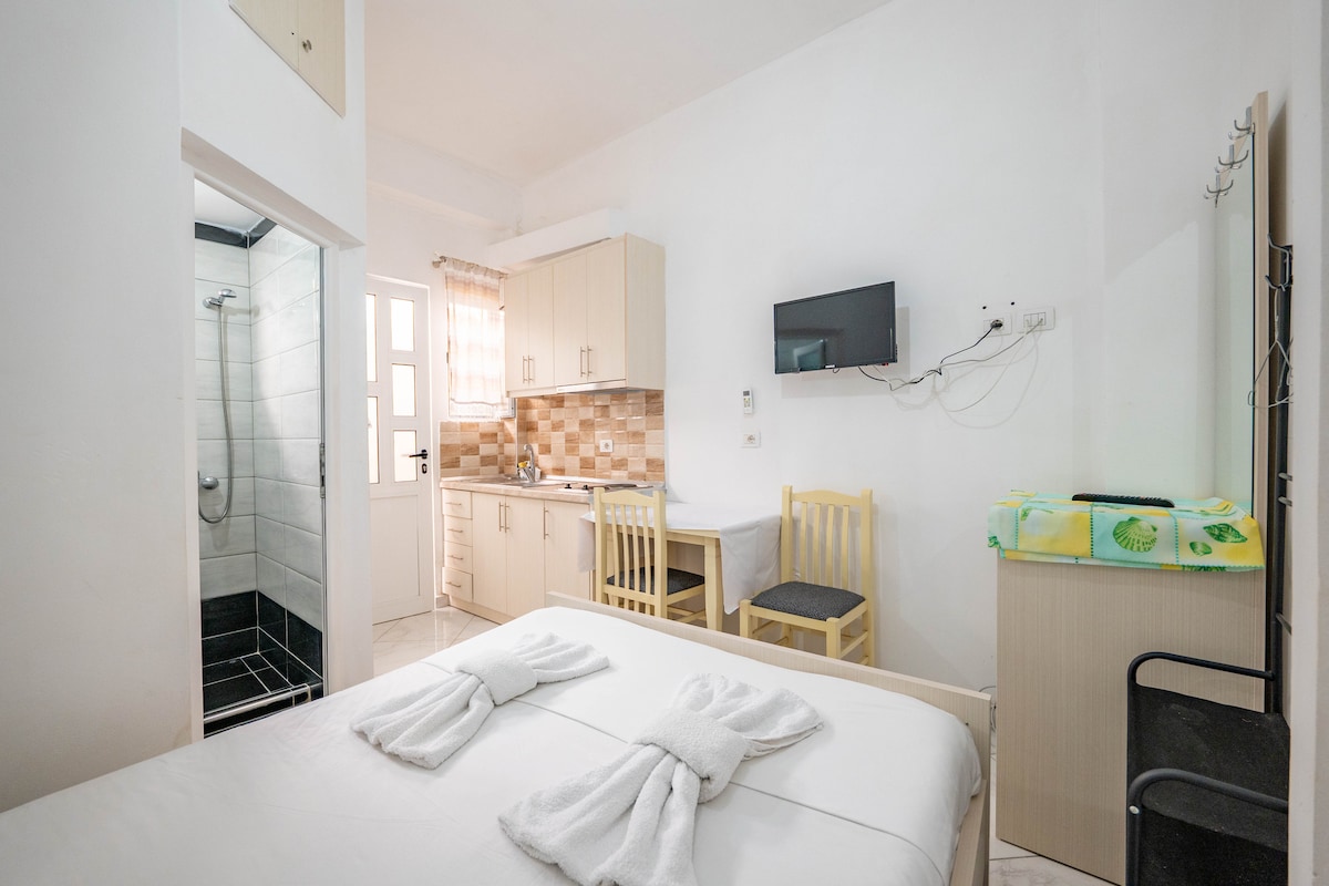 Pequeño y bonito estudio en un barrio residencial tranquilo, en el centro de la ciudad. Todo a poca distancia. Al lado de un supermercado y tiendas. Wifi. Televisión inteligente. Netflix. TV por satélite. Ideal tanto para trabajo como para vacaciones. Un pequeño y bonito estudio situado en una zona tranquila y segura en el centro de Ioannina. Todo a poca distancia. Supermercado, pastelerías, restaurantes cerca. WIFI. Smart-Sat TV. Netflix Un lugar ideal para un viaje de negocios o de vacaciones.