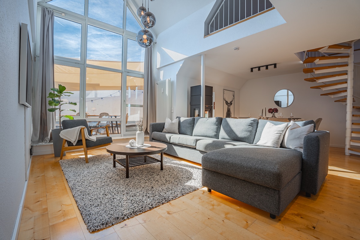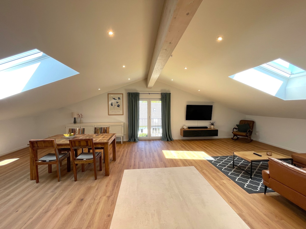 Vistas a 3 países y 4 montañas Moderno apartamento urbano de 65 m² en el centro y con una logia de 10 m² con vistas a los viñedos para relajarse. ¡Una mezcla individual, generosa y única de moderno y antiguo! Edificio antiguo de 1920 y completamente renovado en 2014 ¡WiFi, KONUS y aparcamiento público gratuitos!