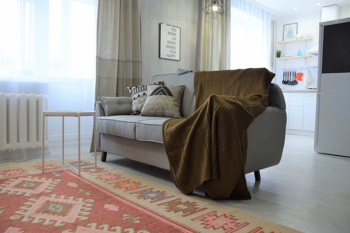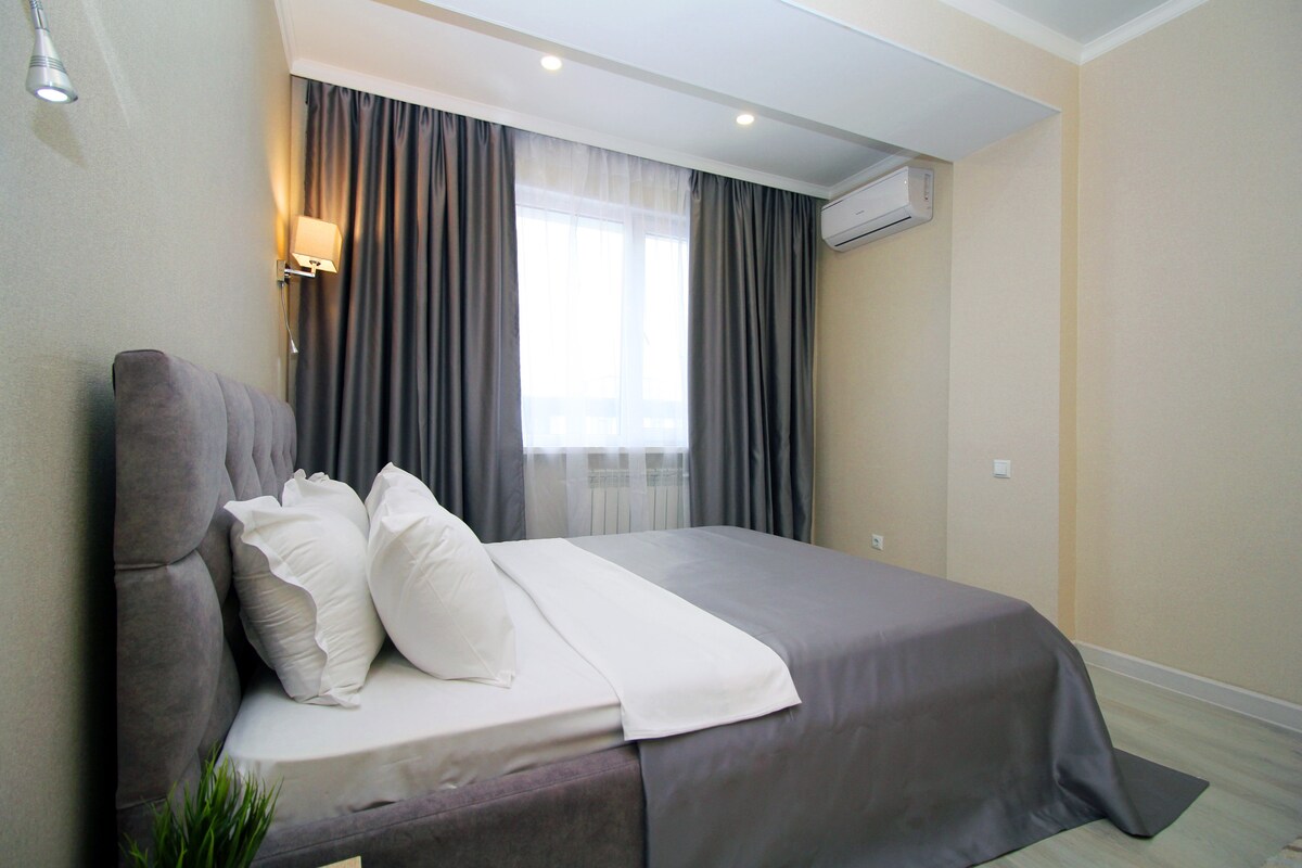 La mejor ubicación para sentir el ambiente de Almaty. ¡El mismo centro donde todo está a poca distancia a pie! Cerca del centro comercial, cafeterías, cines, parque de 28 Panfilov, parque Gorky, zoológico, Green Bazar, sinfonía, ópera, etc. Las comodidades: lavavajillas, lavadora, cafetera, aire acondicionado, TV, 2 proveedores de Internet Kazaktelecom 500mb y AlmaTV 100mb, plancha y CERRADURA INTELIGENTE. Se proporcionan toallas y accesorios de ducha para todos los huéspedes.