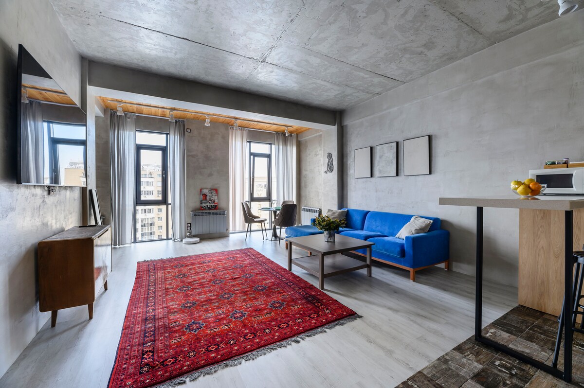 Este piso superior de pied-à-terre se encuentra en el afluente distrito del Barrio Dorado, justo en el corazón de Almaty. Diseñado cuidadosamente con una meticulosa atención al detalle, es un refugio ideal para individuos o parejas. Alojarse aquí te coloca en el lugar perfecto para explorar el centro de Almaty, con una gran cantidad de cafés, boutiques, atracciones culturales y transporte público a pocos pasos. La icónica Ópera está a solo un par de minutos a pie. El edificio no tiene ascensor.