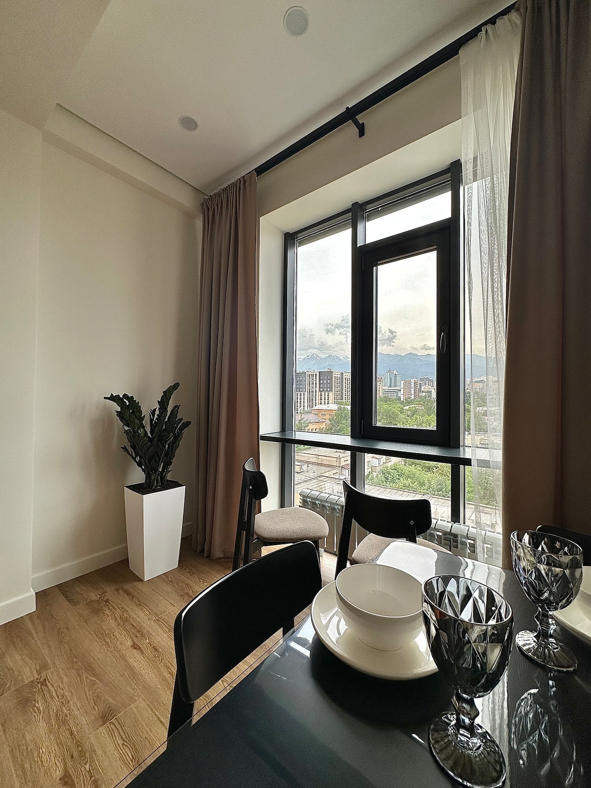 Apartamentos con vistas impresionantes a las montañas y la ciudad esperan a sus huéspedes. Se sumergirá en una atmósfera de comodidad y confort. Hay todos los electrodomésticos necesarios, ropa de cama y toallas. Cerca de los lugares de interés de la ciudad. A poca distancia de Starbucks, el hotel RIXOS, restaurantes de cocina nacional, bares de karaoke, discotecas, gimnasios, centros comerciales. Cómodo cruce de transporte. En el complejo residencial hay un minimercado abierto las 24 horas, una tienda de bebidas y una panadería con productos recién horneados. Disfruta de unas vacaciones con estilo en el centro de la ciudad.