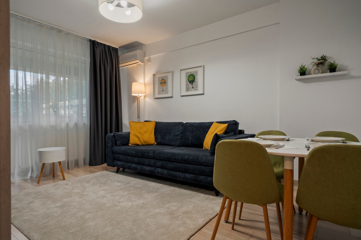 Con este nuevo y acogedor apartamento ubicado en una zona superior de Bucarest, puedes sentirte como en casa. El hogar puede ser un “lugar” en el que te sientas como si este lugar fuera familiar para ti. El departamento está en un complejo residencial tranquilo, con entrada desde la autopista A3, en el límite de los distritos de Aviatiei, Floreasca, Tei, Pipera. Las oficinas de las empresas más grandes se encuentran justo al lado del complejo. Si eres por motivos de trabajo, puedes ir caminando a los edificios de oficinas.