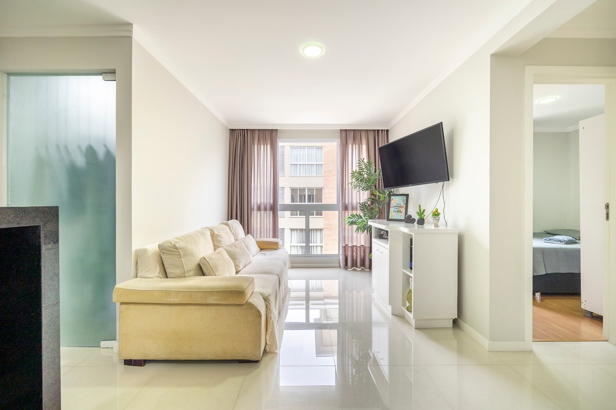 El apartamento tiene una habitación tipo estudio, con cama queen, en la sala un sofá cama y dejo un colchón suelto, es ideal para parejas con hijos, cocina con cocina de inducción con 2 hornillas, equipado con todos los utensilios Aire acondicionado frío y caliente en la habitación, pero calienta o enfría todo el apartamento, Proporciono ropa de cama y toallas, mantas, EL EDIFICIO TIENE UN BUEN ESTACIONAMIENTO INCLUIDO DENTRO DEL EDIFICIO El voltaje de la energía en SC es de 220 voltios