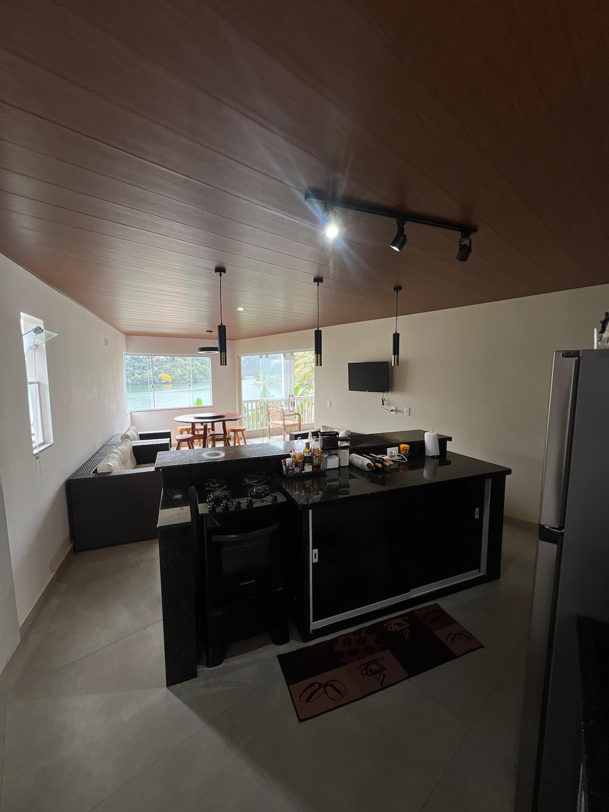 Chalet de 2 plantas y mirador con vistas al mar rodeado por la Mata Atlántica. Hay 2 recámaras, oficina, deck superior con acceso al mirador, cocina equipada, sala de TV con Netflix, baño, patio trasero completamente cercado, regadera, asador y jardín con árboles frutales. Disponemos de Wi-Fi en toda la propiedad. Estamos a sólo 10 minutos del muelle y a 7 minutos de los comercios de Vila do Abraão. Aquí no es sólo alojamiento sino una experiencia de inmersión en la naturaleza :-)