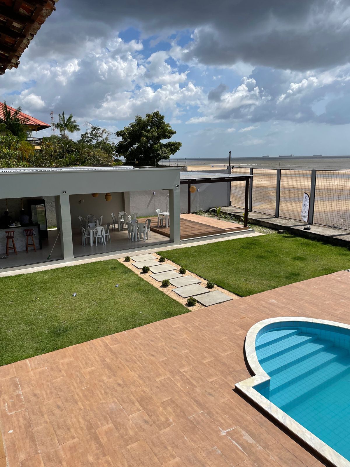 Casa muy cómoda y espaciosa en Praia do Paraíso en Mosqueiro, con WI-FI gratuito, amplio balcón para hamacas, 4 dormitorios (3 suites), todos amueblados, amplia sala de estar y comedor, garaje cubierto para 6 coches y moto, zona de barbacoa, piscina (con protección para niños y cascada), mesa de billar y baño exterior. Acceso rápido a la orilla y a la playa con una distancia de 200 m. Lugar ideal para llevar a la familia y tener tranquilidad. Tiene una cerca alrededor de la casa y cámaras para una total seguridad.
