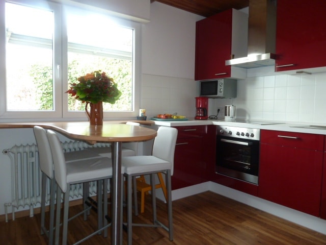 Pasarás tu estancia en un apartamento colorido y acogedor, que tiene entrada privada. En la terraza cubierta de 20 metros cuadrados con salón frente al apartamento, puedes disfrutar de la vista del jardín, barbacoa, comer o simplemente relajarte. El departamento de aproximadamente 54 metros cuadrados está ubicado en el primer piso de nuestra casa para 2 familias. Todas las ventanas del departamento están equipadas con mosquiteros. Hay estacionamiento gratuito disponible.